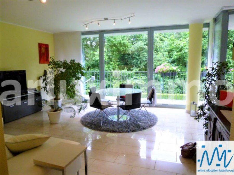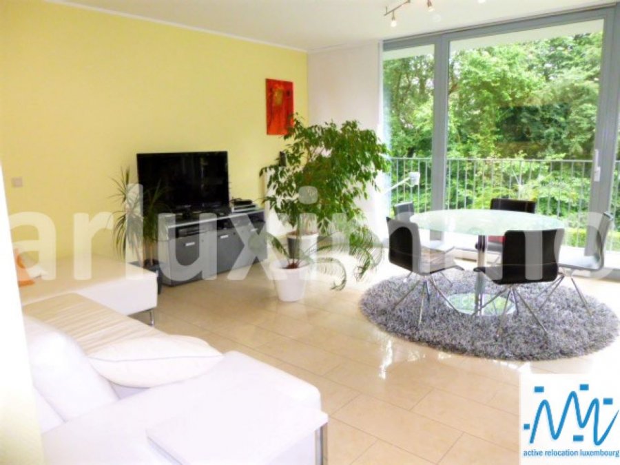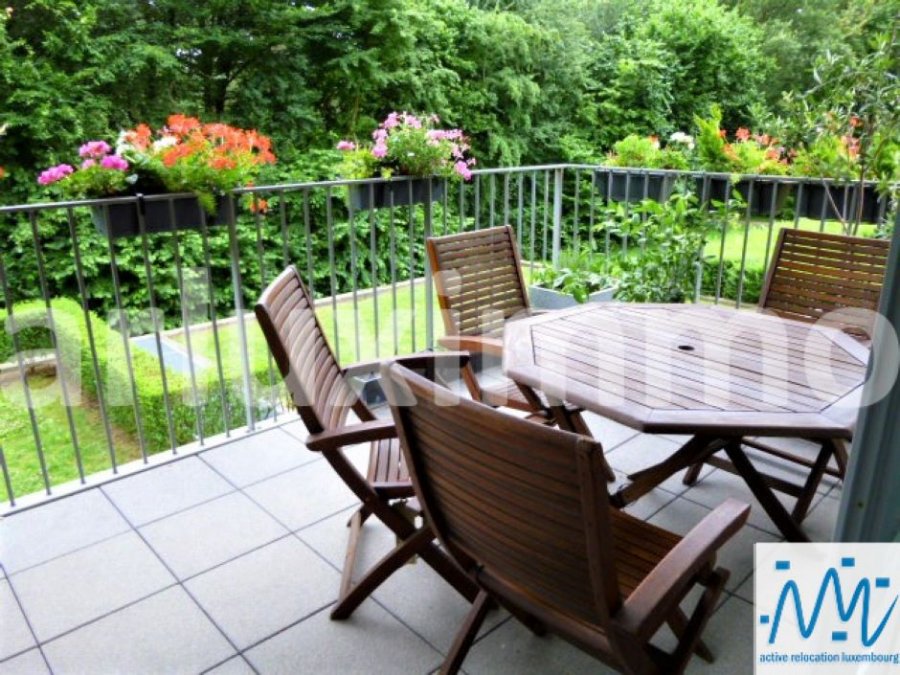 "active relocation luxembourg" vous propose un magnifique appartement meublé et équipé. Celui-ci comprend un living avec baies vitrées et accès terrasse, une cuisine équipée avec accès terrasse, 2 chambres, 1 salle de bain avec WC, 1 WC séparé, cave, buanderie avec machine à laver et sèche-linge, emplacement parking couvert, grande terrasse sans vis à vis avec vue sur la campagne.Loyer mensuel t : 2.550 euros