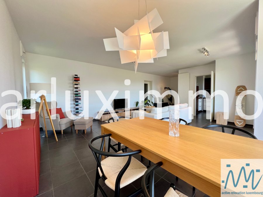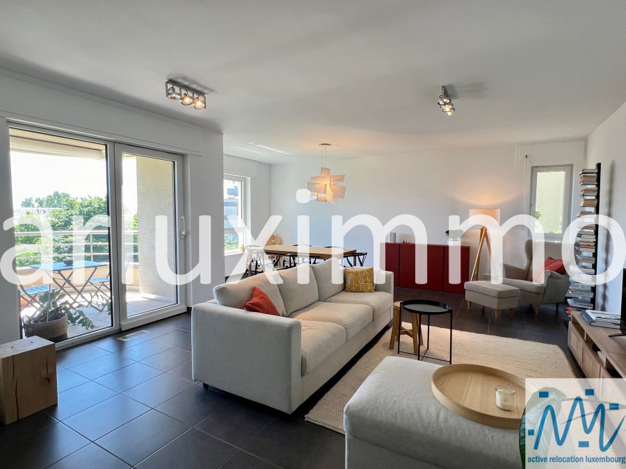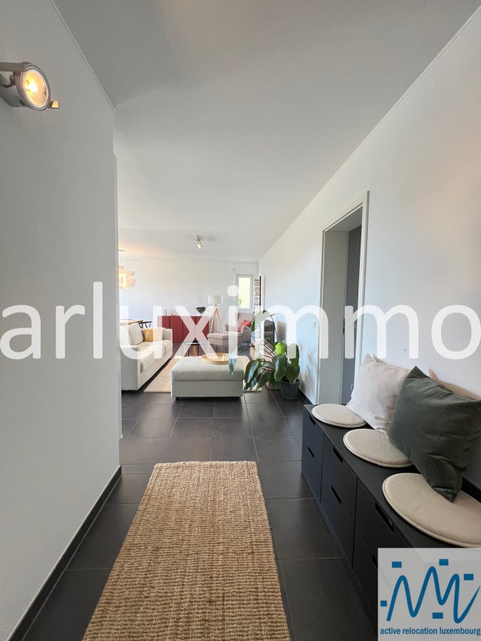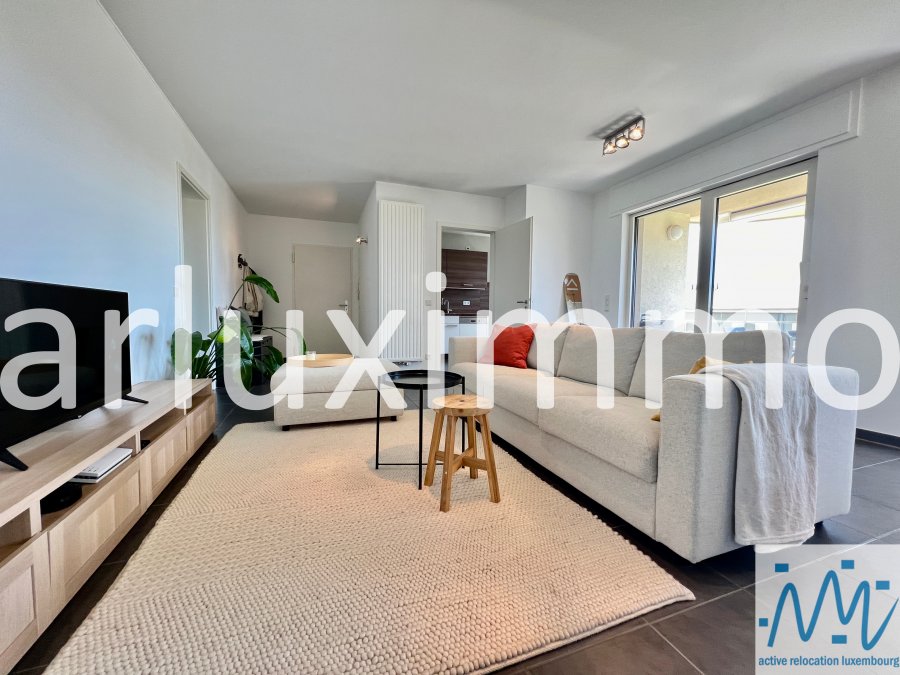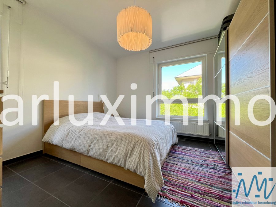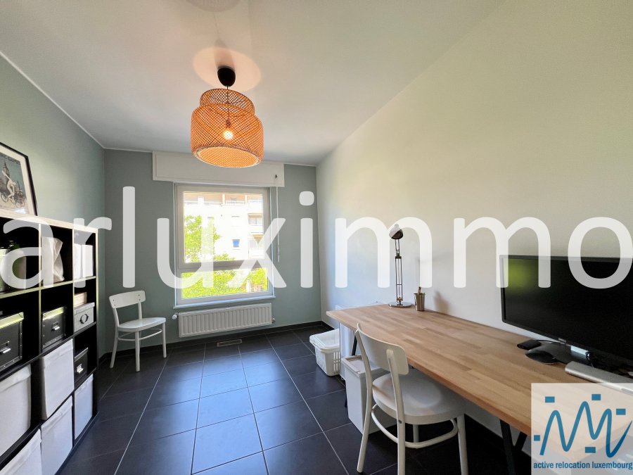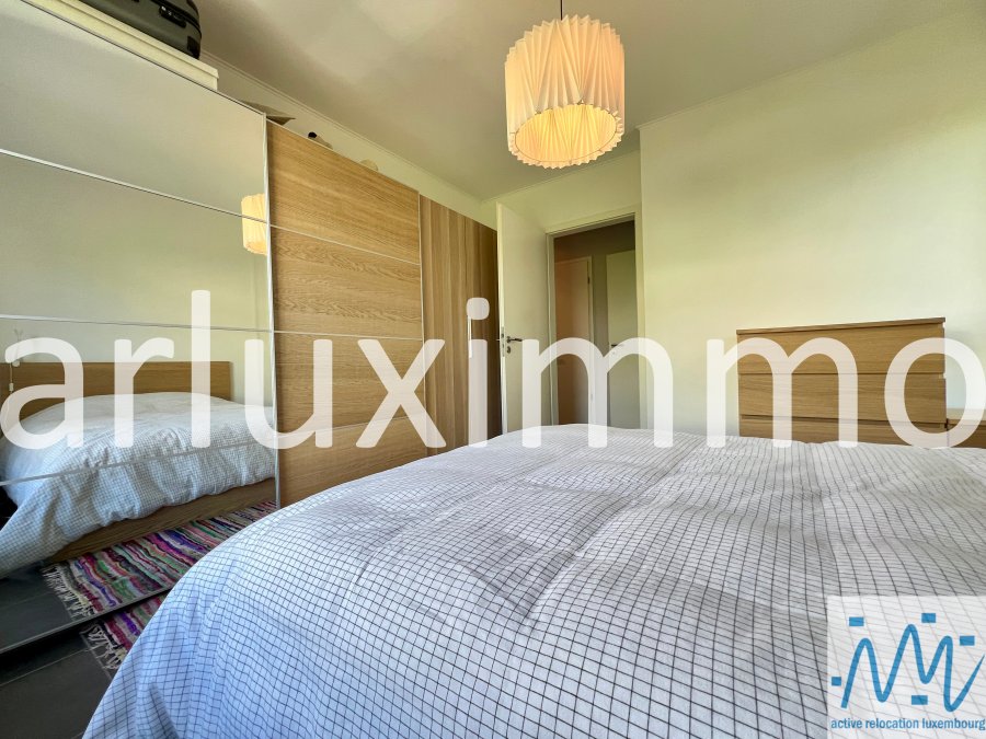 "active relocation luxembourg" vous propose un magnifique et lumineux appartement entièrement meublé et équipé comprenant un hall d'entrée, un grand séjour avec accès vers la terrasse/loggia bien orientée, une cuisine entièrement équipée avec coin à manger, 2 chambres (une chambre avec lit double et une chambre actuellement utilisée en bureau), une salle de douche avec WC, un WC séparé, un petit débarras.L'appartement est complété par : un emplacement de parking intérieur (équipé d'une borne électrique), une cave avec une machine à laver et un sèche-linge.