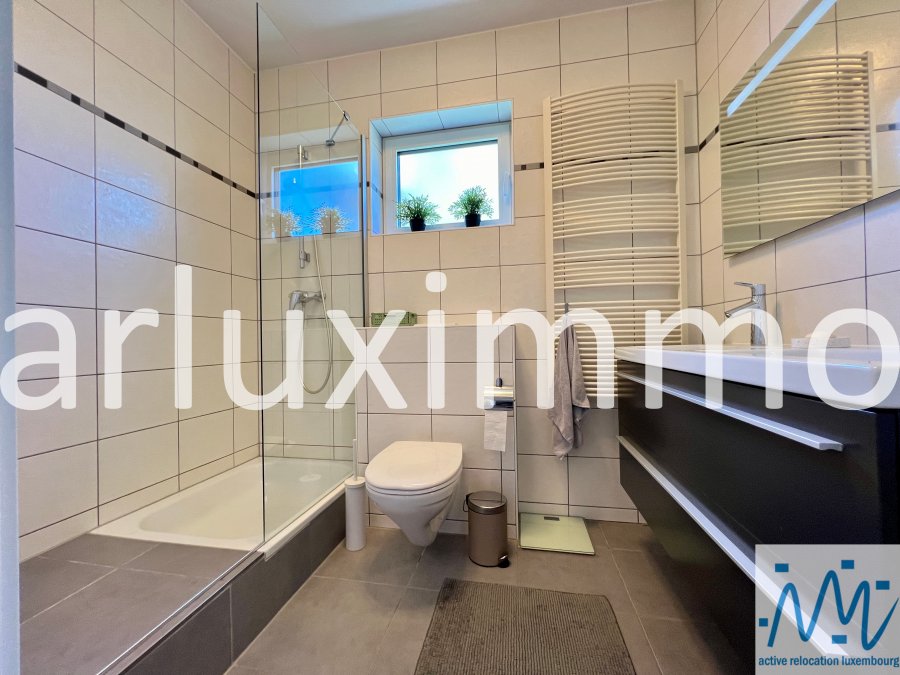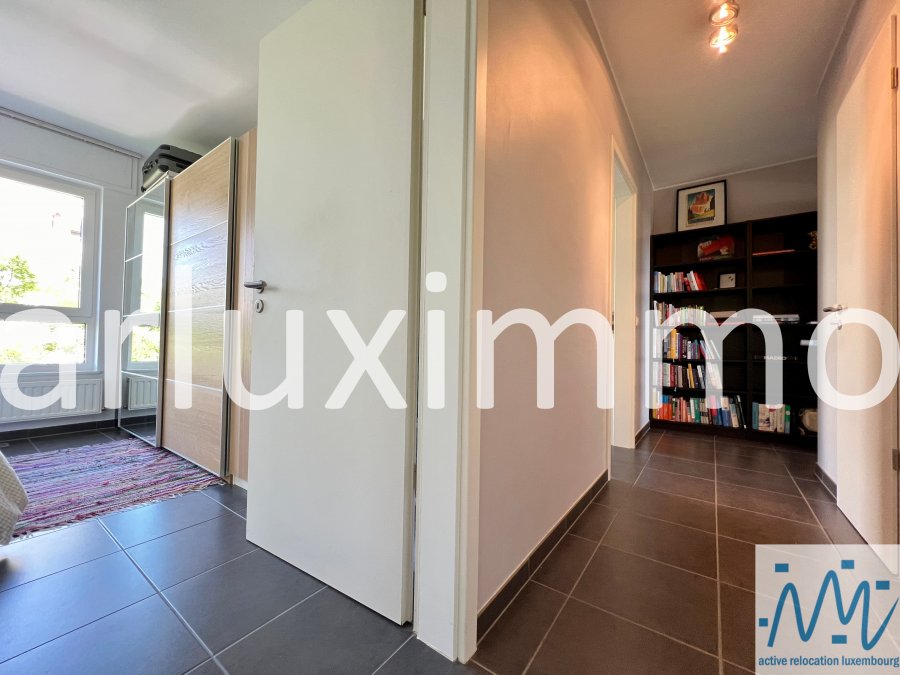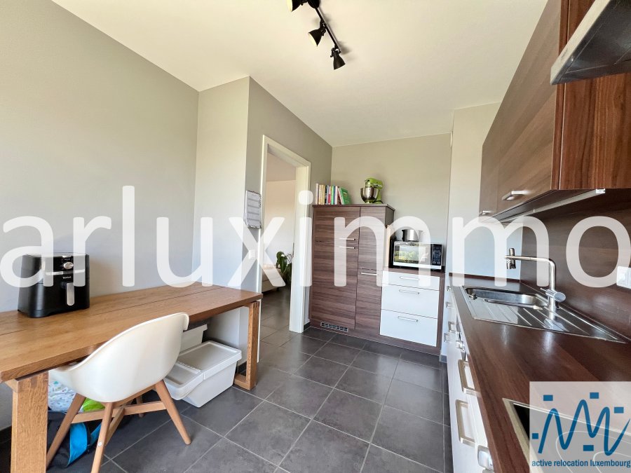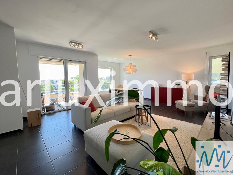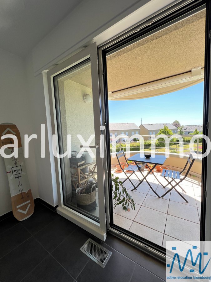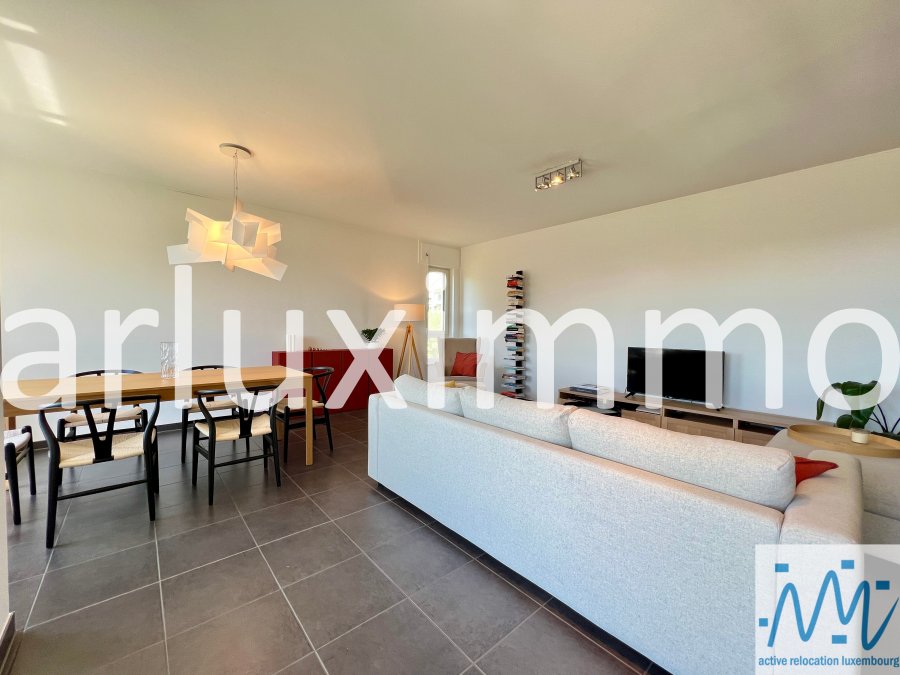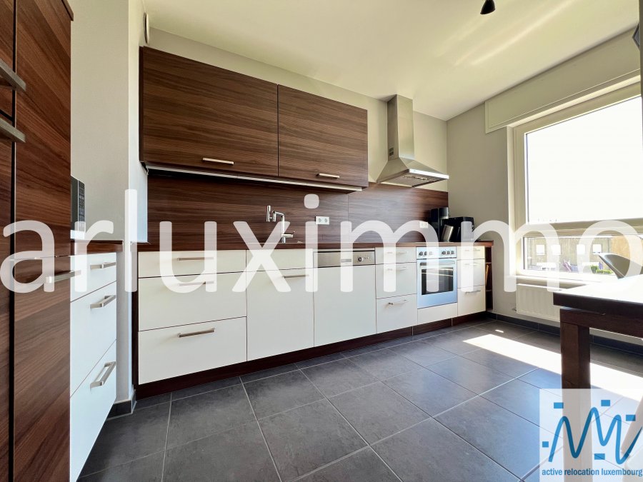 "active relocation luxembourg" vous propose un magnifique et lumineux appartement entièrement meublé et équipé comprenant un hall d'entrée, un grand séjour avec accès vers la terrasse/loggia bien orientée, une cuisine entièrement équipée avec coin à manger, 2 chambres (une chambre avec lit double et une chambre actuellement utilisée en bureau), une salle de douche avec WC, un WC séparé, un petit débarras.L'appartement est complété par : un emplacement de parking intérieur (équipé d'une borne électrique), une cave avec une machine à laver et un sèche-linge.