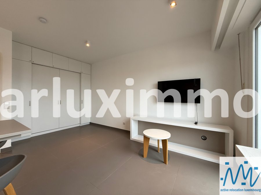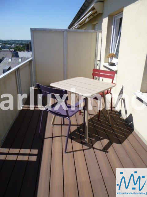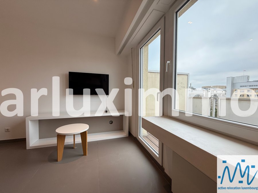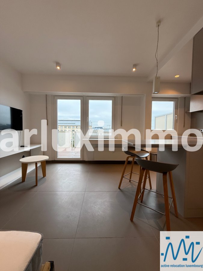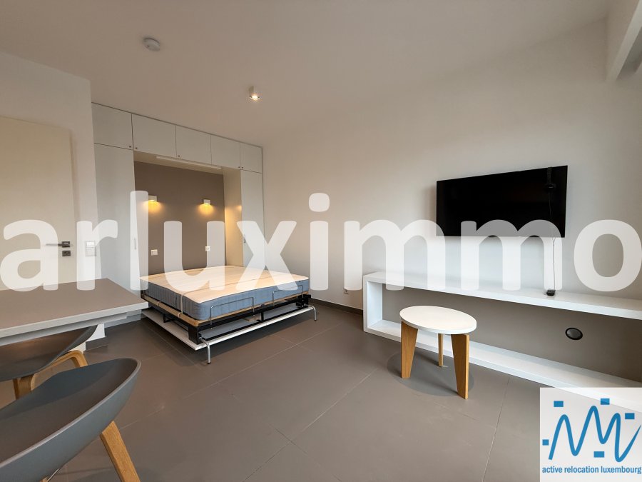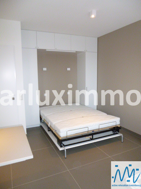 UNIQUEMENT POUR 1 SEULE PERSONNE "active relocation luxembourg'' vous propose ce très beau studio équipé (lit encastré, vaisselle, télévision) au 6ème, dernier étage comprenant un hall d'entrée avec placard, une pièce de vie avec cuisine équipée avec lave-linge, dont un coin nuit avec lit escamotable et rangements, le coin salon avec TV, une salle de douche avec WC et une grande terrasse en bois plein sudAu sous-sol une cave privative pour compléter ce lot