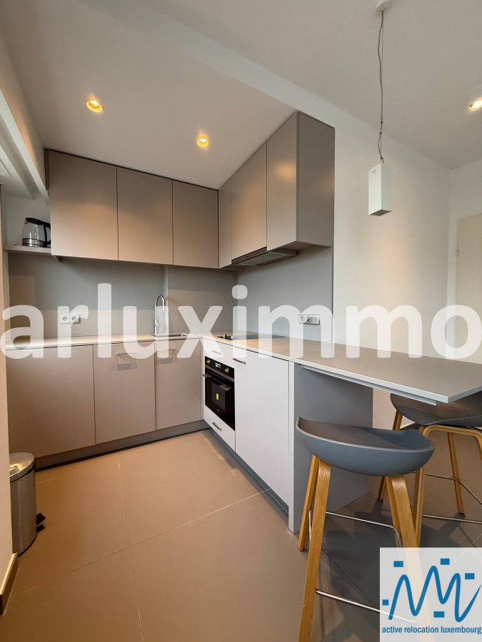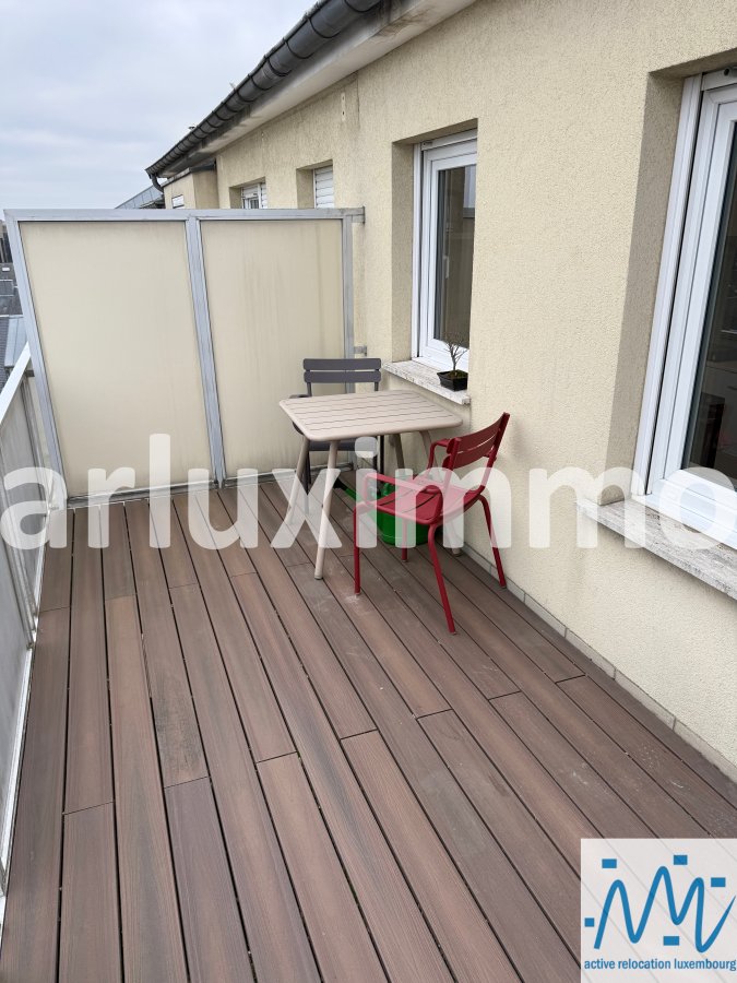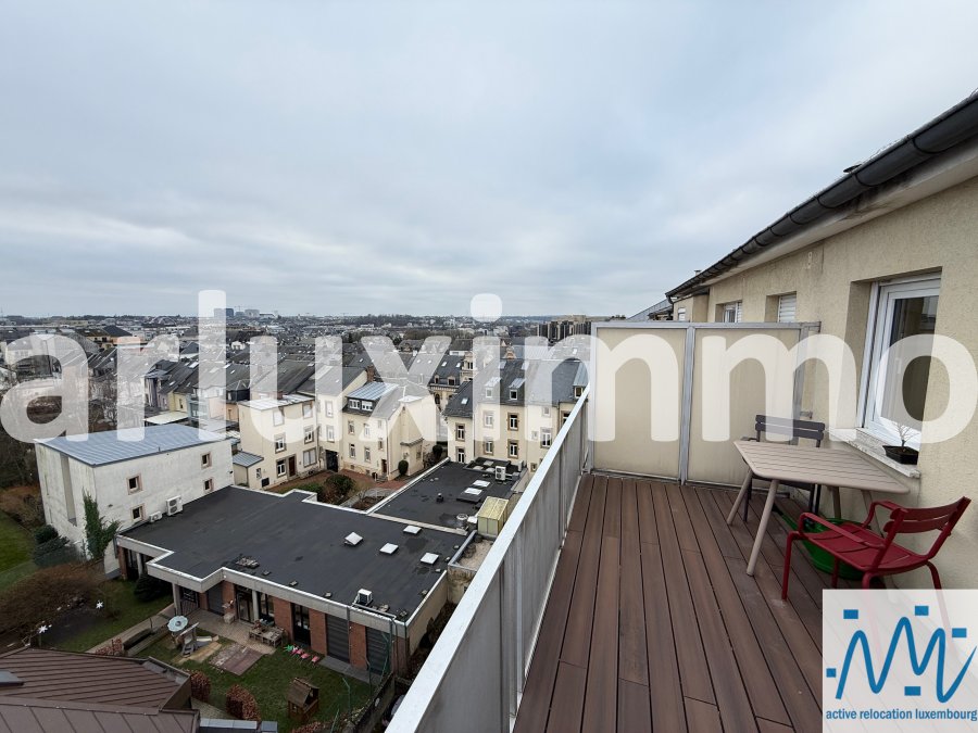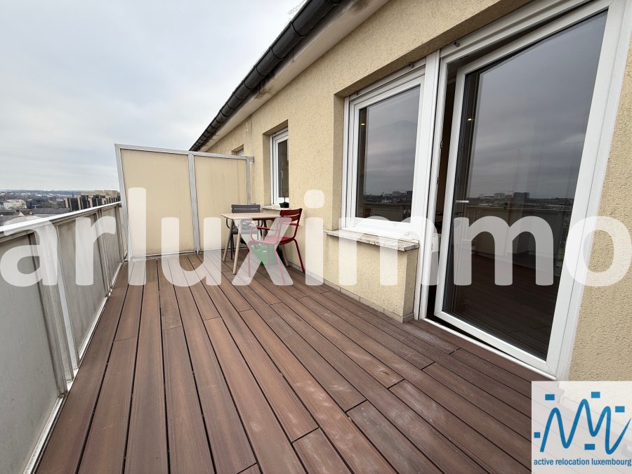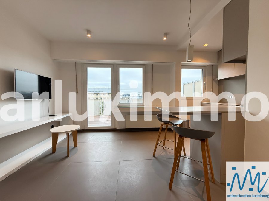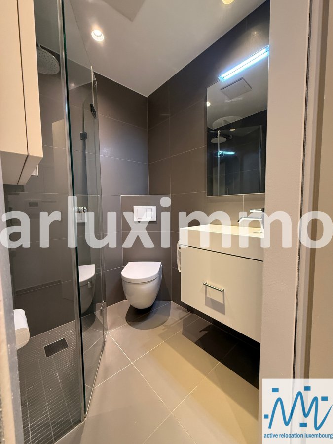 UNIQUEMENT POUR 1 SEULE PERSONNE "active relocation luxembourg'' vous propose ce très beau studio équipé (lit encastré, vaisselle, télévision) au 6ème, dernier étage comprenant un hall d'entrée avec placard, une pièce de vie avec cuisine équipée avec lave-linge, dont un coin nuit avec lit escamotable et rangements, le coin salon avec TV, une salle de douche avec WC et une grande terrasse en bois plein sudAu sous-sol une cave privative pour compléter ce lot