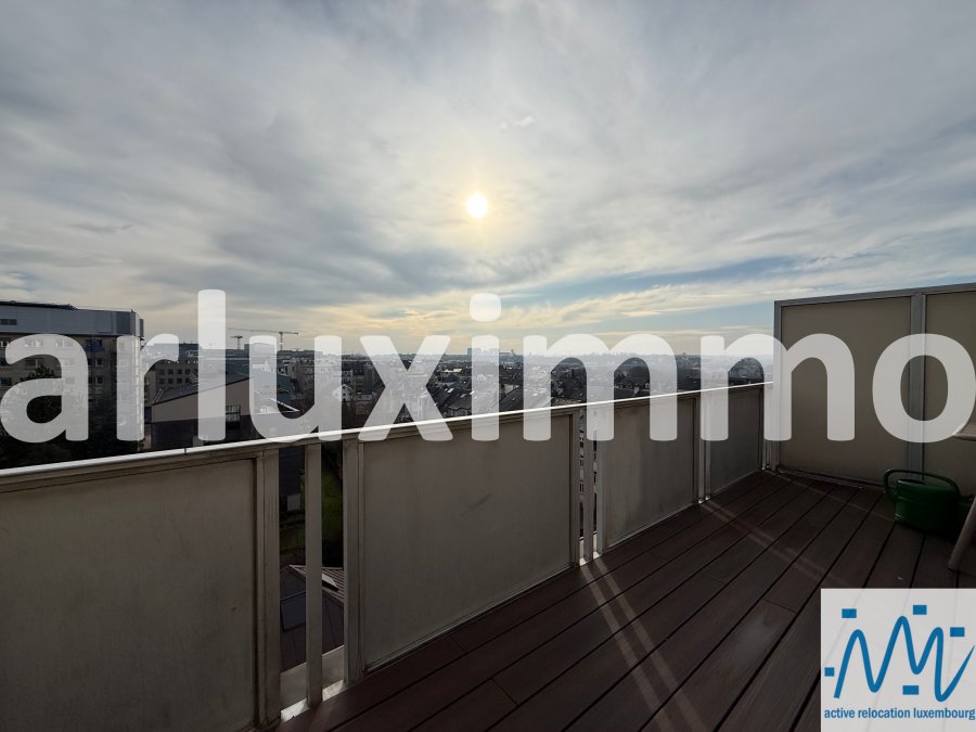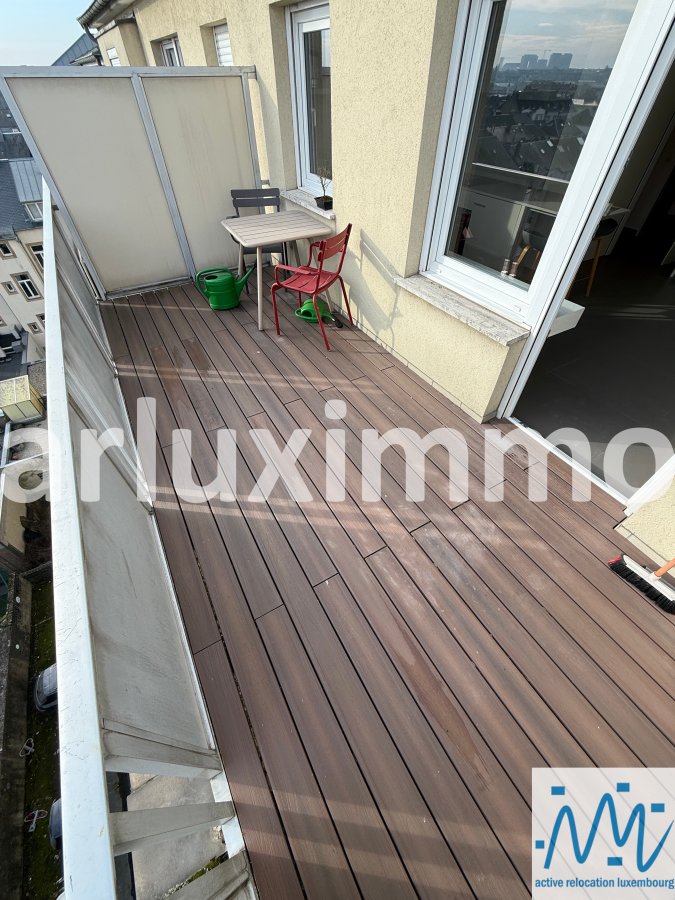 ***SOUS RESERVATION***UNIQUEMENT POUR 1 SEULE PERSONNE "active relocation luxembourg'' vous propose ce très beau studio équipé (lit encastré, vaisselle, télévision) au 6ème, dernier étage comprenant un hall d'entrée avec placard, une pièce de vie avec cuisine équipée avec lave-linge, dont un coin nuit avec lit escamotable et rangements, le coin salon avec TV, une salle de douche avec WC et une grande terrasse en bois plein sud