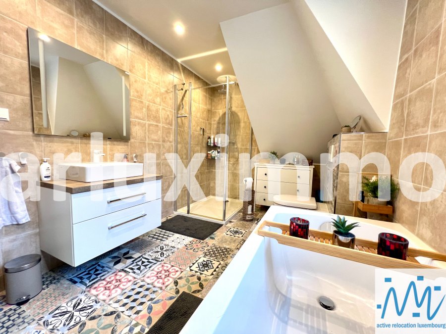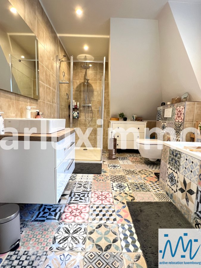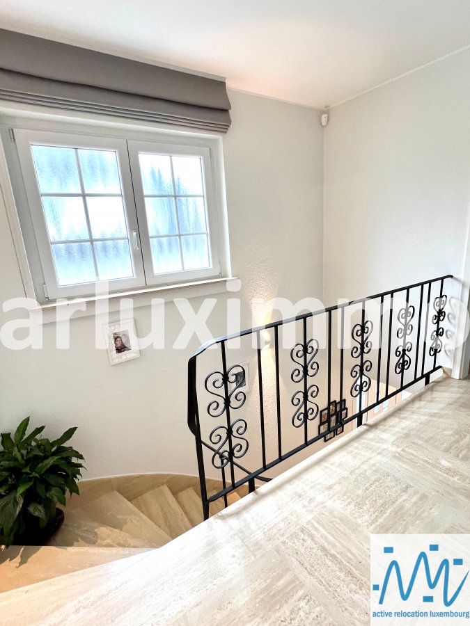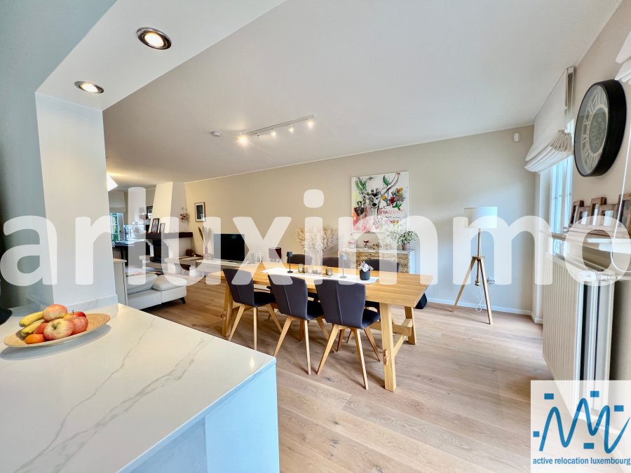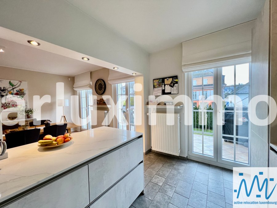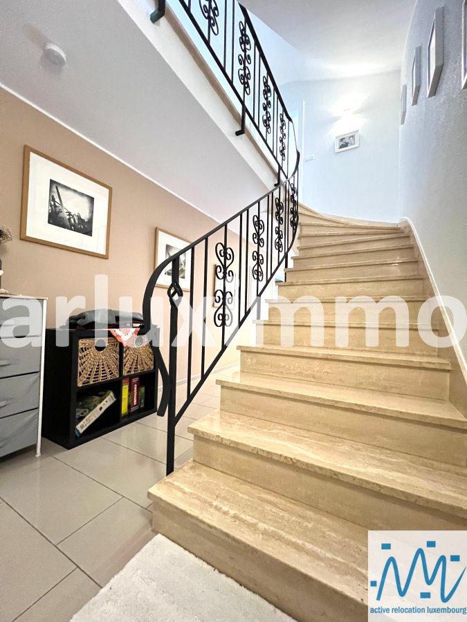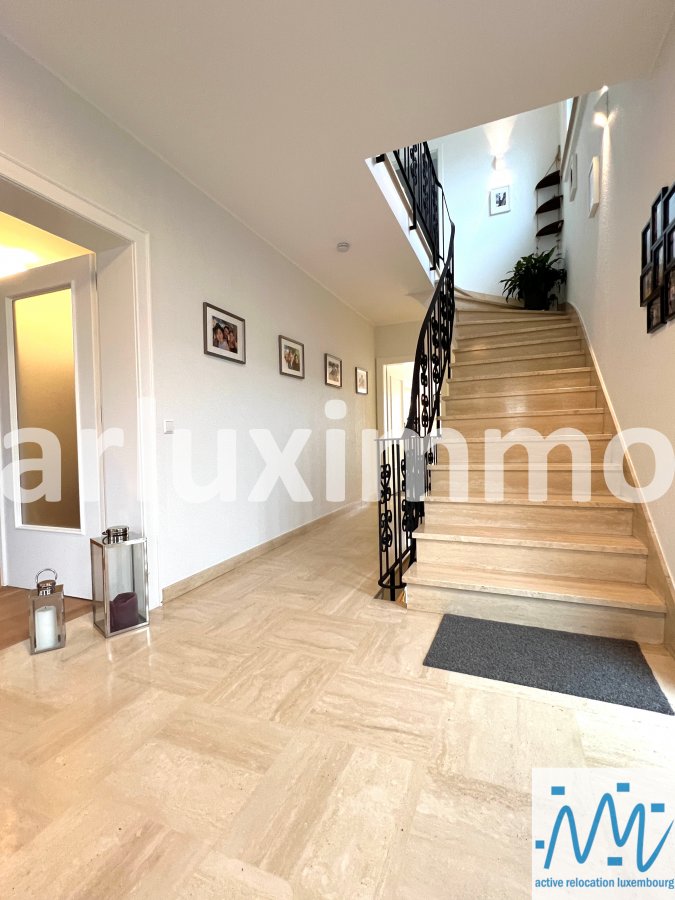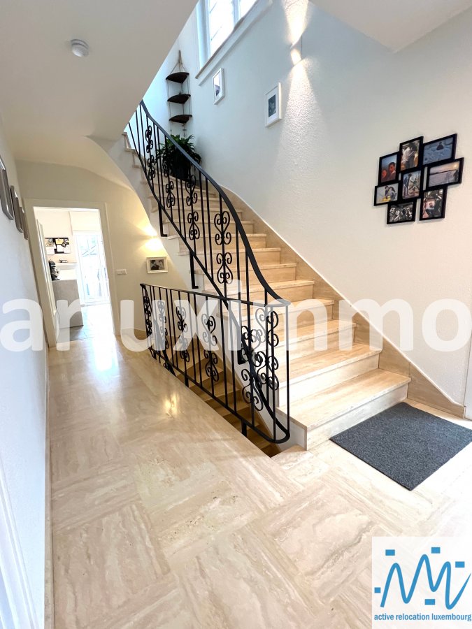 "active relocation luxembourg" vous propose une belle maison libre 3 côté en très bon état d'entretien et ayant subi des travaux de modernisation durant les 5 dernières années, érigée sur un terrain de 3,57 ares, sa surface habitable de +/- 165m² est répartie comme suit :- au RDC : un hall d'entrée, un séjour avec une cuisine équipée semi-ouverte et avec accès à une 1ère terrasse et au jardin par escalier extérieur, les escaliers vers le niveau -1 et le 1er étage